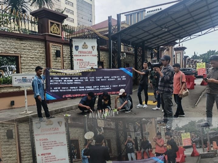 MEDIA WARTA NASIONAL | PAPUA Ratusan Mahasiswa yang tergabung dalam Gerakan Mahasiswa Pemerhati Kebijakan Kepolisian (GMPKK) menggelar Aksi solidaritas terhadap Media Papuanewsonline.com di Papua yang dibungkam oleh Polres Mimika, Polda Papua Tengah, di depan Gedung Mabes Polri, Jakarta Selatan, Rabu (1/10/2025).