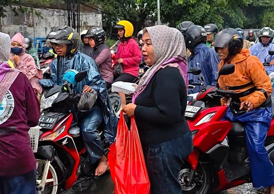 Keterangan foto: Kegiatan pembagian takjil 500 nasi dan kue UMKM Bersatu Jawa Barat kepada pengguna jalan di Surabaya, Jum’at sore (27/2/2026)( foto: Novita).