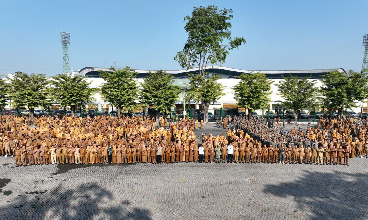 MEDIA WARTA NASIONAL | SIDOARJO’  Bupati Sidoarjo, Subandi, memimpin apel pagi sekaligus rangkaian acara halal bihalal yang dihadiri oleh seluruh Aparatur Sipil Negara (ASN) di lingkungan Pemerintah Kabupaten Sidoarjo di parkir timur GOR Delta, Senin