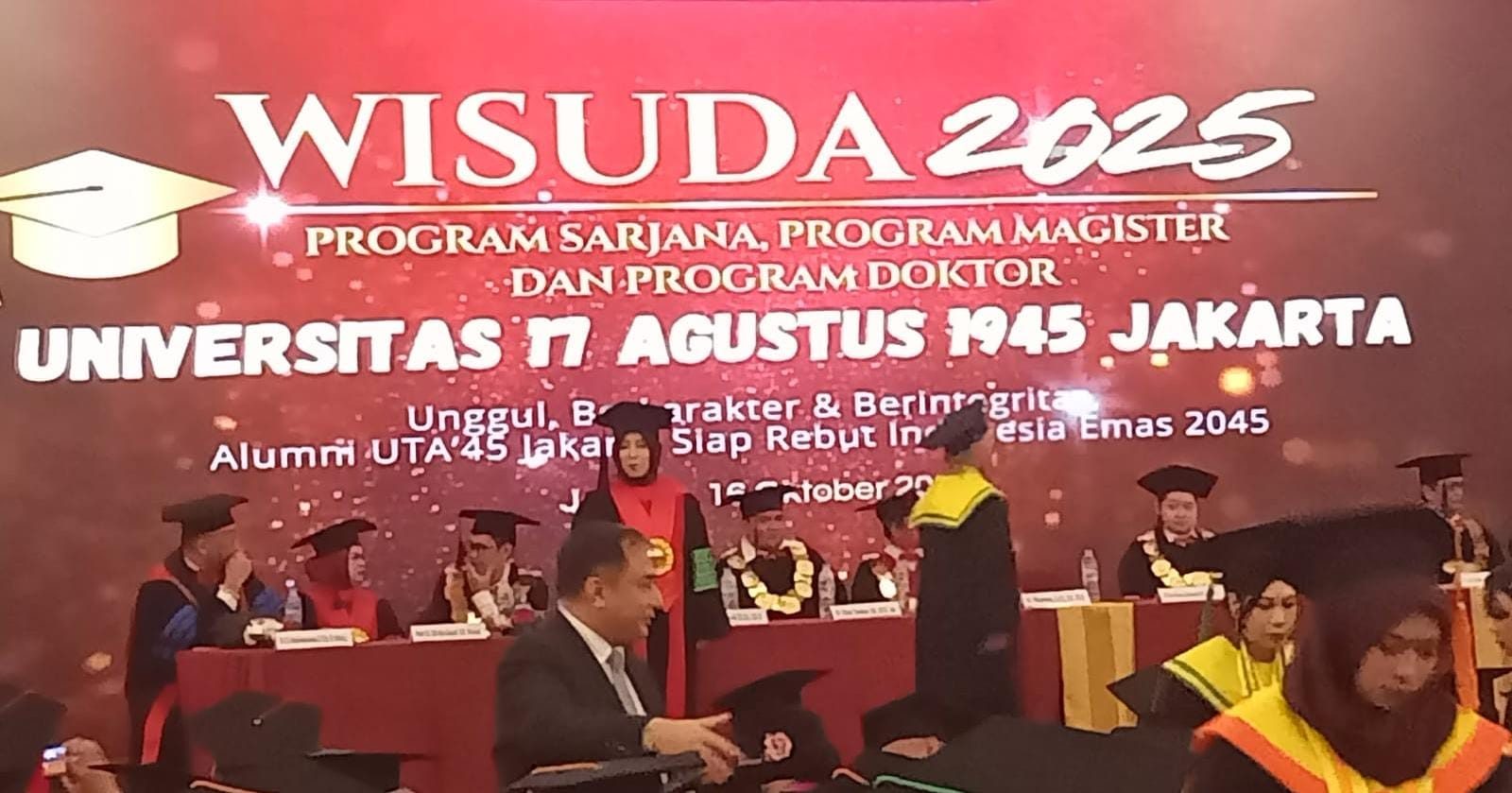 Hal tersebut disampaikan Rudyono dalam acara Wisuda Sarjana, Magister, dan Doktor Universitas 17 Agustus 1945 (UTA 45) Jakarta yang digelar di Klub Kelapa Gading, Jakarta Utara, Kamis (16/10/2025).