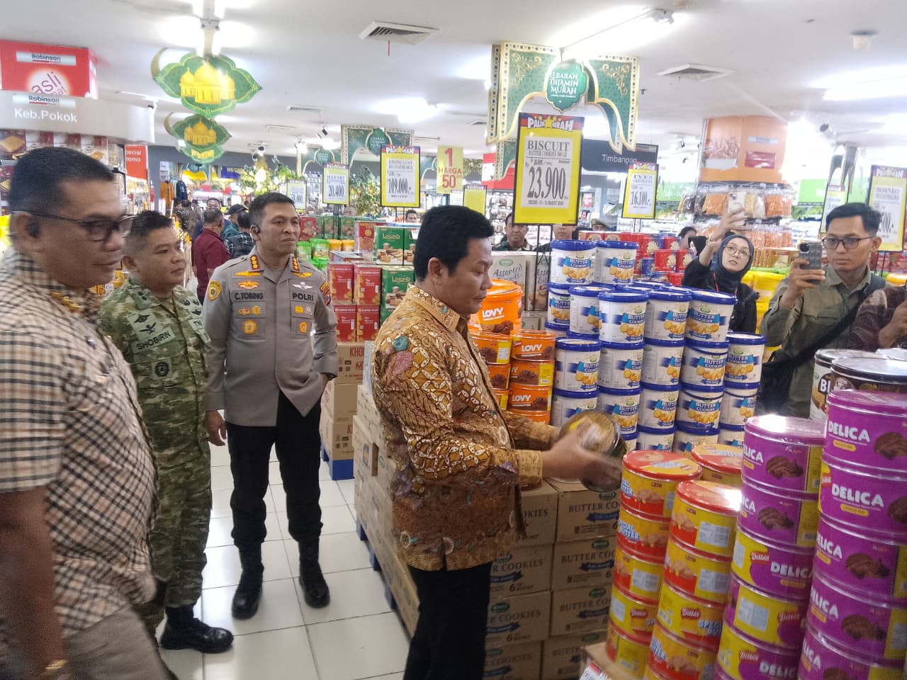 Sidak dilakukan di Ramayana Ciplaz Supermarket, Hypermart Lippo Plaza, dan Superindo Jenggolo guna memastikan keamanan, kelayakan konsumsi, serta kepatuhan terhadap standar kesehatan pangan yang beredar di masyarakat menjelang Lebaran 2026.