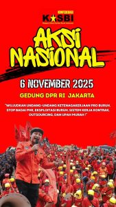 Nasional November 5, 2025 Konfederasi KASBI Serukan Aksi Nasional: “Wujudkan Undang-Undang Ketenagakerjaan Pro Buruh!” Reporter: Winda Editor : Wiratno MEDIA WARTA NASIONAL | JAKARTA – Konfederasi KASBI (Kongres Aliansi Serikat Buruh Indonesia) menyerukan Aksi ...