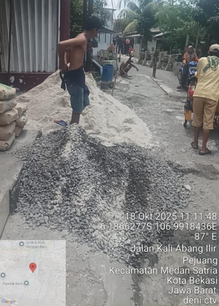 Hingga jalan diperbaiki oleh warga, Sabtu (18/10/2025) pihak Pemkot Bekasi belum datang ke lokasi.
