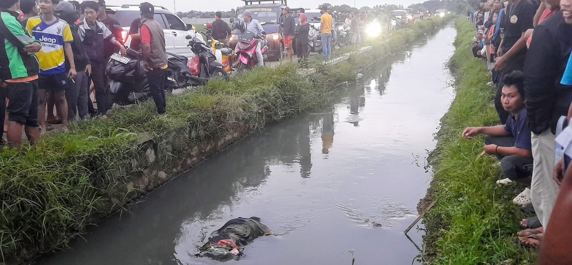 Informasi yang dihimpun di lokasi kejadian menyebutkan, mayat tersebut pertama kali diketahui oleh warga yang tengah melintas di Jalan Tanggul Satria Mekar. Penemuan itu sontak menarik perhatian masyarakat sekitar hingga memicu kerumunan warga di sekitar lokasi.